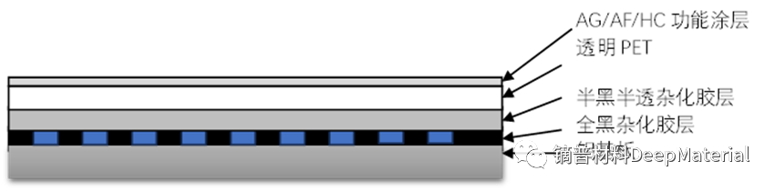 鏑普材料DM-6991是五層結(jié)構(gòu)的封裝膠膜,表面具有防刮擦、防指紋、防炫光功能,中間有透明PET層,封裝層分為半黑半透層和全黑層。全黑層可以在工藝生產(chǎn)過程中形成液態(tài)膠層,可以填充5um級的間隙,并確保色度一致。半黑半透層在工藝生產(chǎn)過程中具有一定的可填充性,固化后具有一定的強度。DM-6991可以同步解決顯示模組對比度增強、光效調(diào)整、可靠性和組件間一致性的問題。目前市場均無可靠的Mini LED封裝材料和工藝,超微間距的芯片間填充問題無法解決,對比度增強及墨色一致性問題也無法解決,同時也無高良率和高效率的封裝工藝。鏑普材料DM-6991目前為市場唯一在研在試的Mini LED封裝材料。